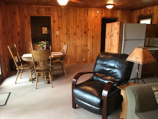 This cabin features a knotty pine interior that offers the charm of yesterday and the modern amenities of today.