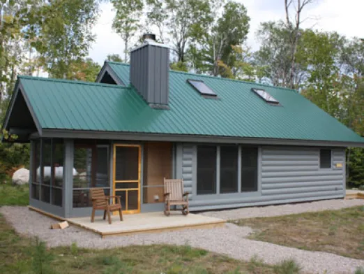 In 2009 the ADA-accessible Raven cabin was built in Pine Pointe to meet the demands of a growing camp. Raven has two bedrooms, a kitchen, a bathroom, a dining area, a living area with a fireplace, and a lovely screened porch.