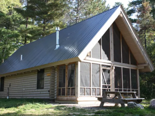 In 2008 the Twilight cabin was built to meet the demands of a growing camp. Twilight has two bedrooms and a sleeping loft, a kitchen, a bathroom, a dining area, and a living area with a gas fireplace. There is also a fabulous screened porch.